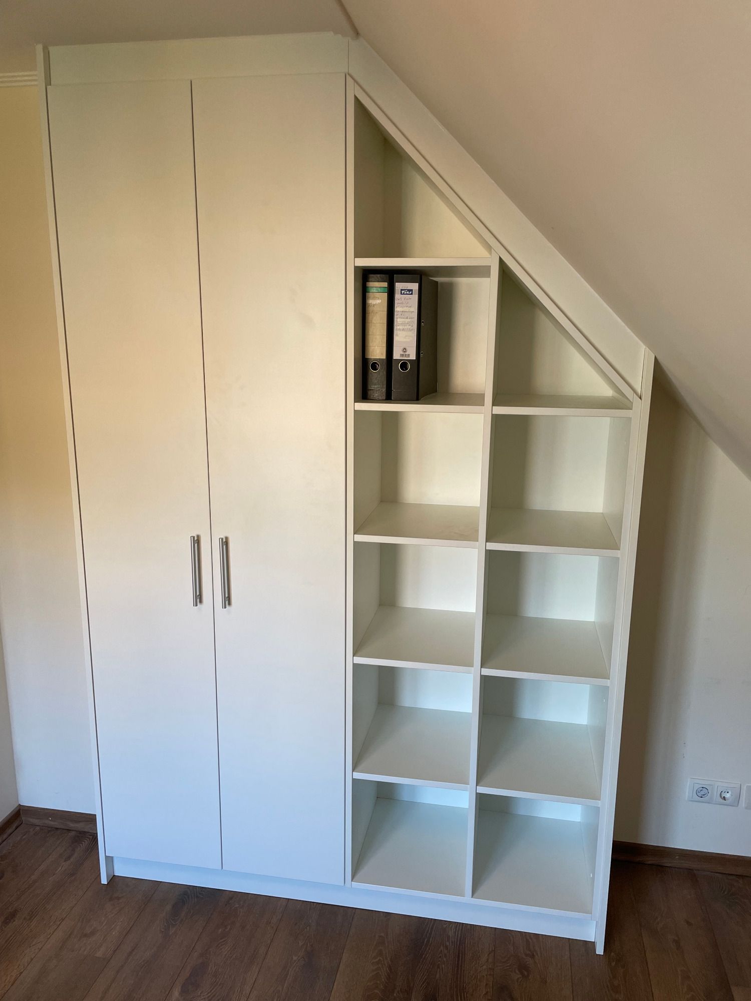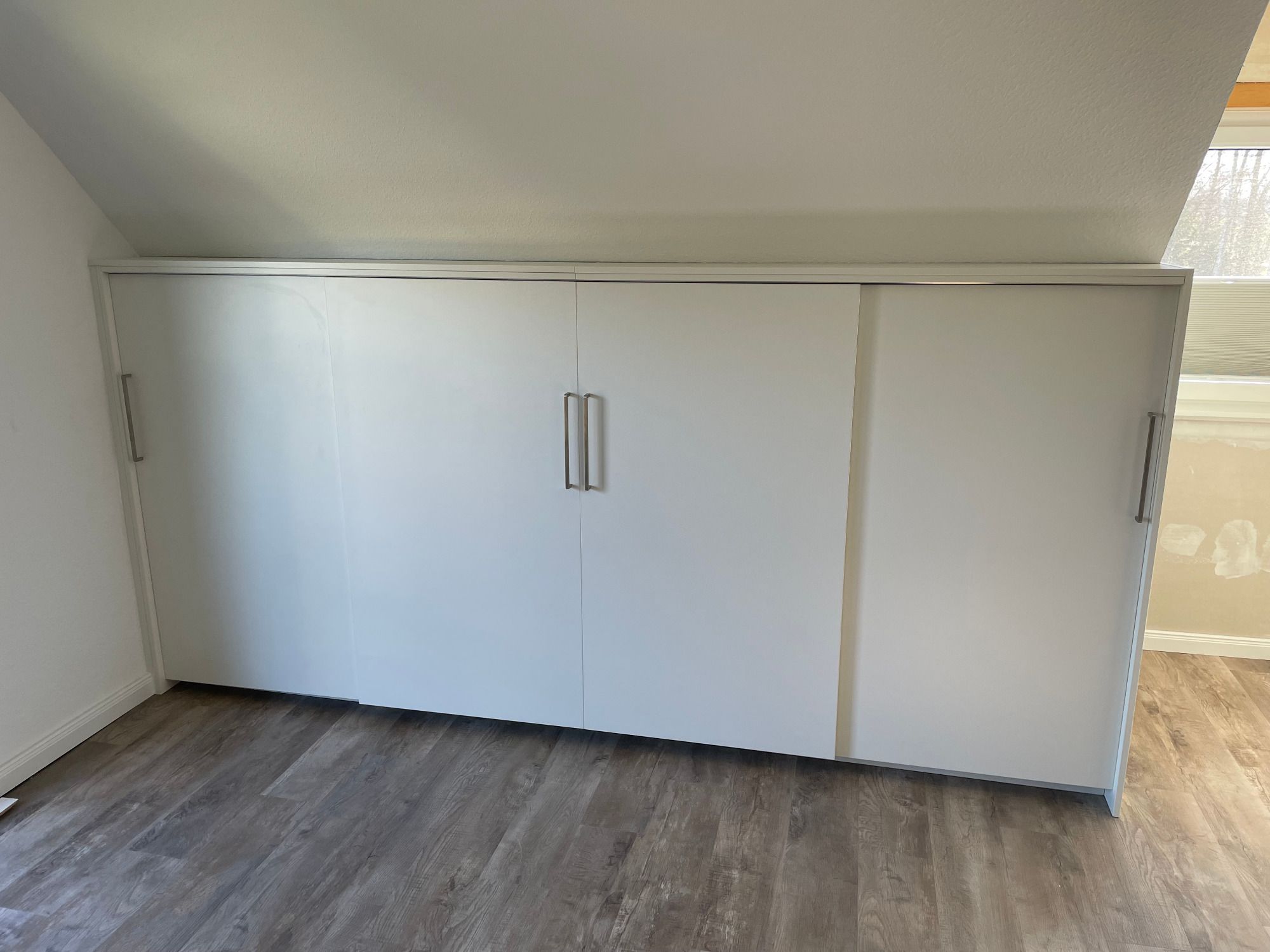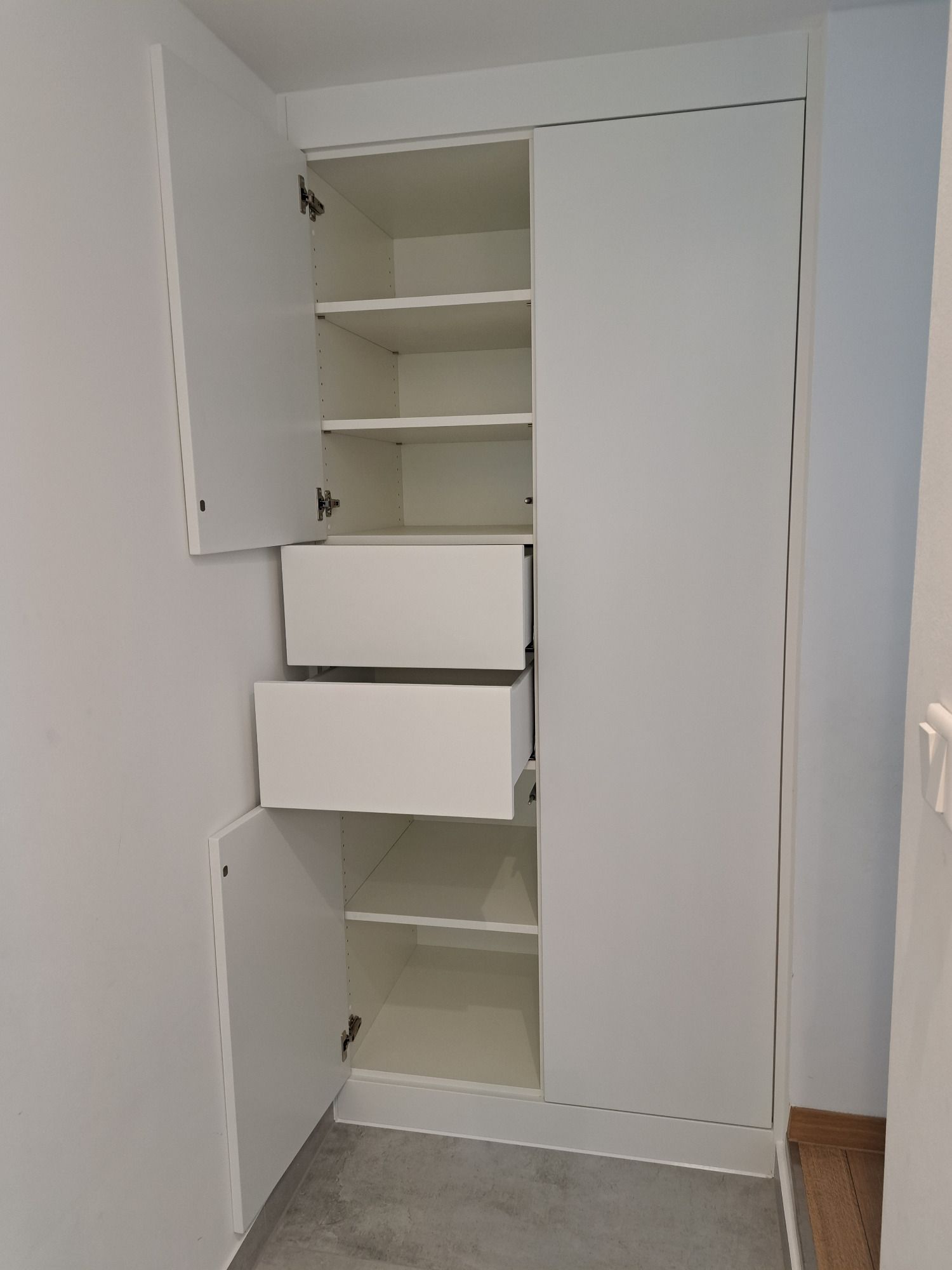 Einbaunischenschrank Korpus aus Kunststoff - weiß Fronten aus MDF - weiß lackiert mit Lichtausschnitt - satina